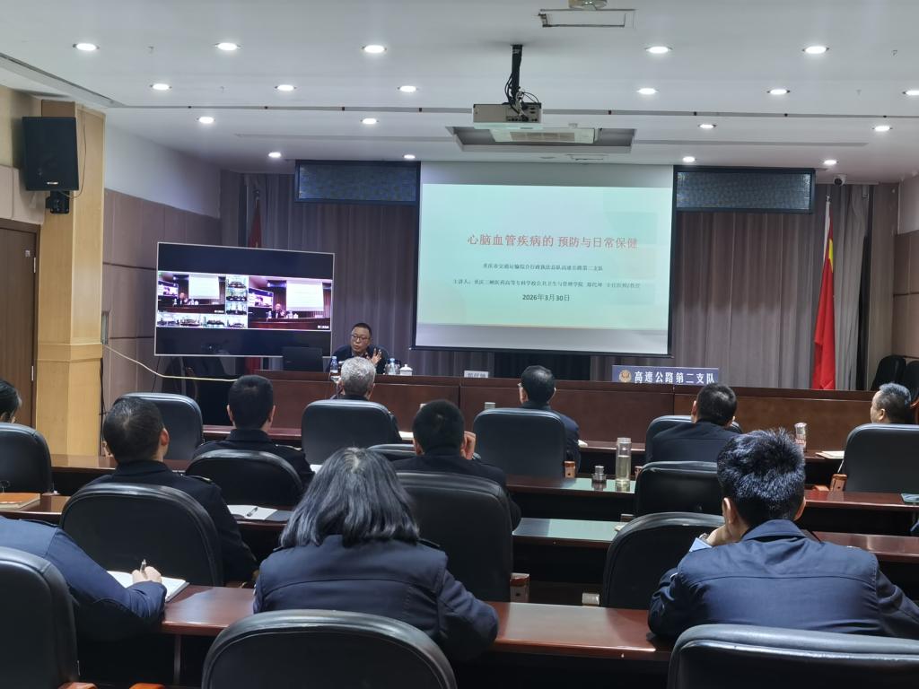 3月30日,在全国“双带头人”教师党支部书记“强国行”项目引领下,重庆三峡医药高等专科学校公共卫生与管理学院直属党支部书记、副院长郑代坤主任医师(教授)走进重庆市交通运输综合行政执法总队高速公路第二支队,开展“心脑血管疾病的预防与日常保健”专题健康科普讲座,两百多名交通执法人员聆听讲座