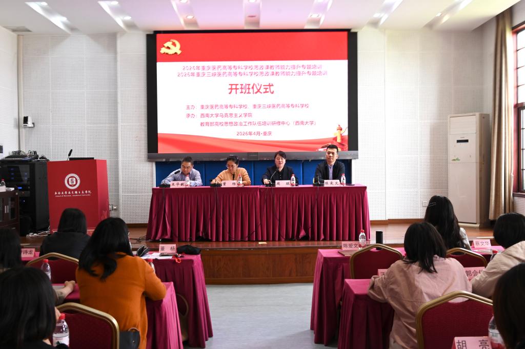 4月22日至24日,我校马克思主义学院联合重庆医药高等专科学校马克思主义学院,在西南大学共同开展2026年思政课教师能力提升专题培训,本次培训由西南大学承办,两校共计50余名思政课教师参训。