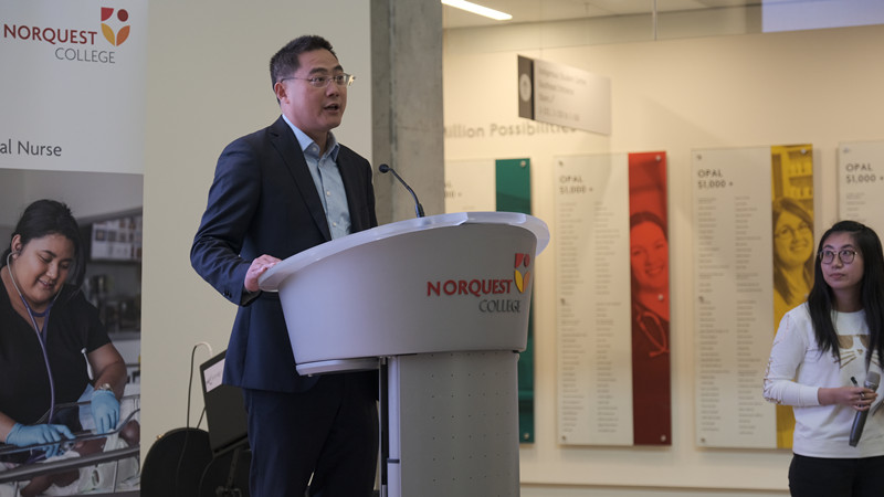 学校2017级护理专业学生冉皓予、孙海宁参加了在加拿大Senaca College(圣力嘉学院)和NorQuest College(诺奎斯特学院)举办的技术竞赛。竞赛基于临床案例,采用团队赛形式,将人文沟通、VR训练、临床思维、模拟实训考核相结合,重点考察学生英文沟通交流、评判性思维、团队协作、专业照护等能力。我校冉皓予、孙海宁两名同学流利的英文表达、娴熟的护理技能、扎实的专业知识获国内外院校高度肯定,最终摘得“最佳团队奖”“最佳领导力奖”“卓越成就奖”三项大奖,冉皓予同学作为优秀学生代表在比赛总结会上发言。
