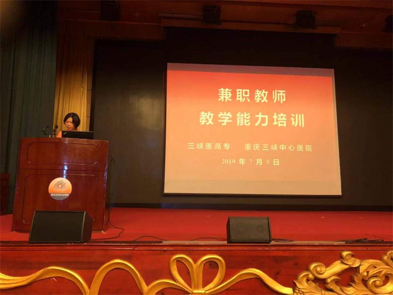 6月30日、7月5日、7月7日和7月13日学校采取“送培到院”方式分别在万州区人民医院、重庆三峡中心医院、万州区中医院和附属医院对万州区人民医院、重庆三峡中心医院、万州区中医院、万州区妇幼保健院和附院的共计1200余名兼职教师进行了教学能力培训。培训内容包括“课堂教学规范与要求”、“课堂授课方法与技巧”、“教学重要意义及角色定位”“现代教学技术运用”和“示范课”等方面。
