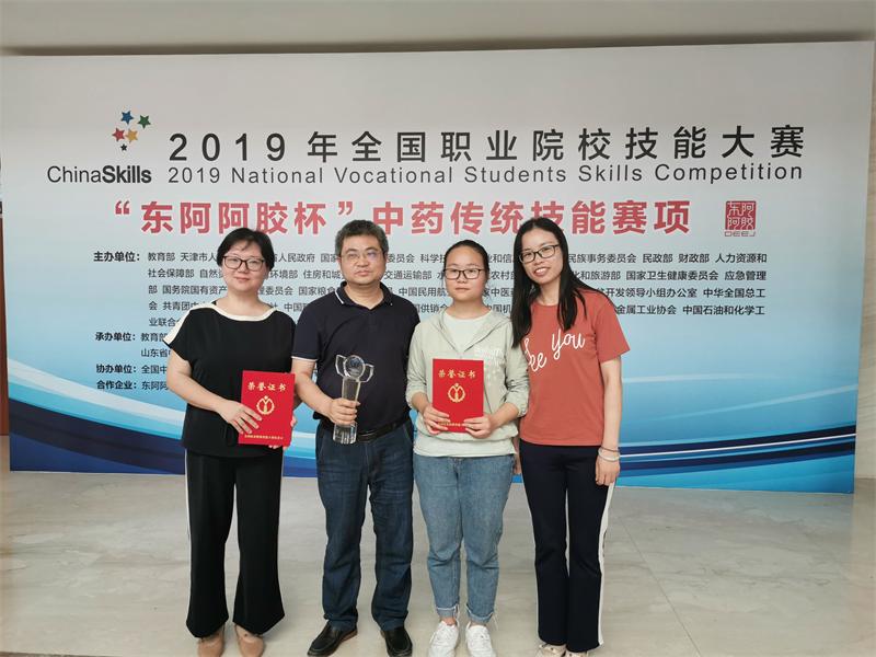 6月13~14日,由教育部主办的2019年全国职业院校技能大赛“东阿阿胶杯”中药传统技能赛项在山东中医药高等专科学校举行,来自全国28个省、自治区、直辖市77所高职高专院校的123位选手同场竞技。经过激烈角逐,学校药学院16级中药专业学生白颂,老师王梦禅、马羚、陈久明的指导下,凭借扎实的基本功、稳定的发挥,以优异成绩斩获全国技能大赛一等奖。