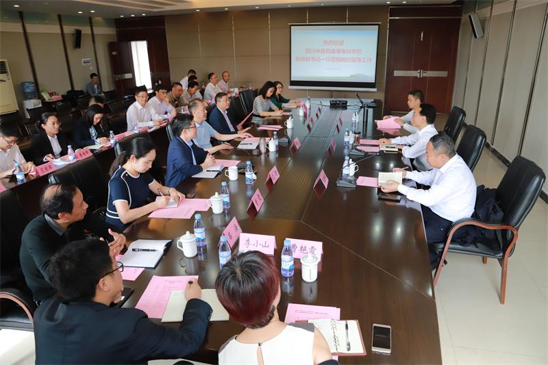 5月20日下午,四川中医药高等专科学校党委书记秦晓明,副校长商碧辉、先德强一行14人来学校考察交流。学校党委书记周建军,副书记冉隆平,副校长谭工、沈力,党委办公室、行政办公室、人事处、教务处、附属医院、中医学院、护理学院、药学院医技学院、基础医学部等负责人参与考察交流。