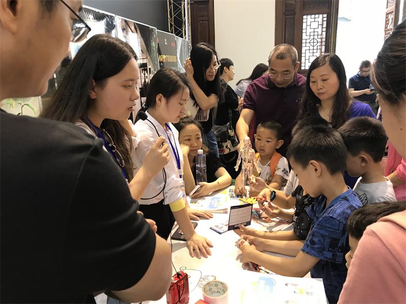 我校中医药文化馆、中药科技馆、生命科学馆三馆联合,经过一个月的精心策划与准备,参加了本次展览。其中,中医药文化馆带去了中医传统健身功法展演和中医艾灸体验项目,中药科技馆开展了常见药食两用中药材安全食用知识宣传、植物花草书签DIY和常见中药材辨识活动,生命科学馆开展了VR虚拟走近人体和趣味人体拼装互动体验,吸引了5000余名现场群众尤其是中小学生参与体验。