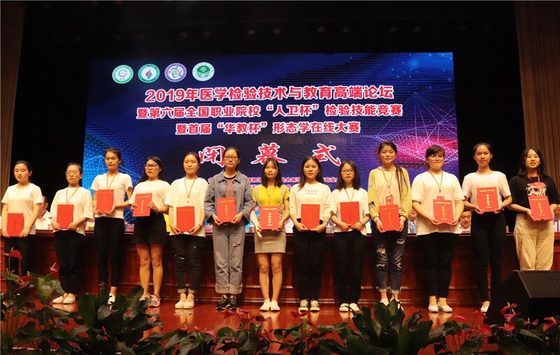 此次比赛以手工法操作进行,分别完成形态学检验、免疫学检验、微生物学检验(细菌分离技术、革兰染色及细菌鉴定思路)、生物化学检验(血糖测定及临床应用)、临床检验(白细胞计数及临床应用)五个项目赛项的竞技。赛前我校选手技能实训天天比,临床应用时时抓。赛中沉着应对赛场突发情况,勇攀技能高峰,表现出扎实的技能功底以及强烈的团队精神,全面展现良好的精神风貌。颁奖仪式上萍乡市委副书记、市长李江河,萍乡市副市长黄强,萍乡市政府秘书长兰叶子,萍乡市政府副秘书长贺飞,全国卫生职业院校检验技能竞赛总裁判长吕世静,萍乡市教育局局长李奭萍,萍乡市卫健委主任彭文华,全国卫生职业院校检验技能竞赛组委会秘书长杨拓等领导为获奖者颁奖,并发言表示“技能人才是实现制造强国目标的重要支撑,全国职业院校检验技能竞赛是集中展现职业院校师生风采、发掘技能人才的主要平台,是提高检验技术教育水平的具体实践,更是营造全社会关心、支持职业教育发展良好氛围,提升技能人才培育质量的重要举措。”