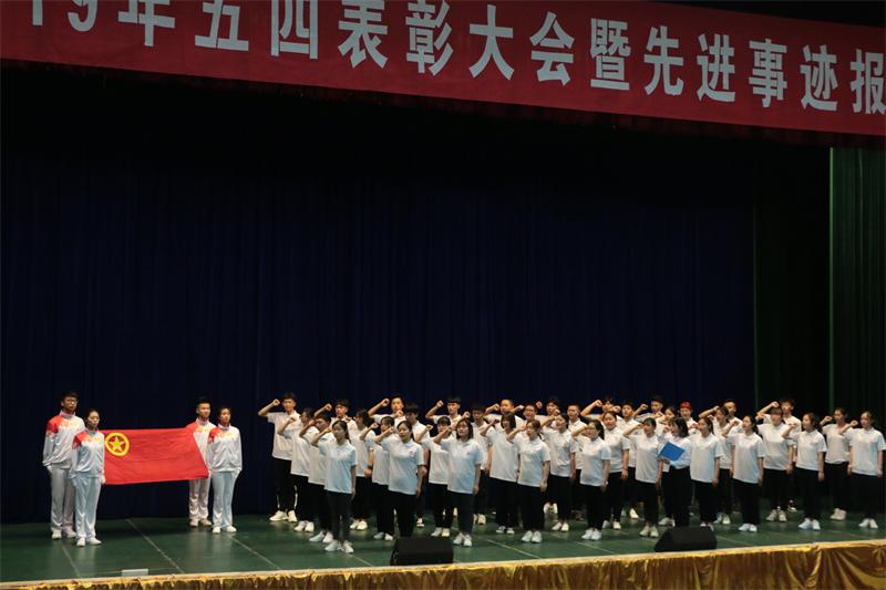 会上,学校对2017-2018学年度先进集体和个人行了表彰。先进集体和个人代表从如何做新时代中国特色社会主义合格建设者和接班人的角度,分享了自己的思考和感悟,进行了先进事迹报告,引起了在场师生的共鸣。38名新团员进行了庄严的入团宣誓,会议在《光荣呀!中国共青团》的齐声合唱中结束,使全体参会人员接受了一次神圣的仪式教育。
