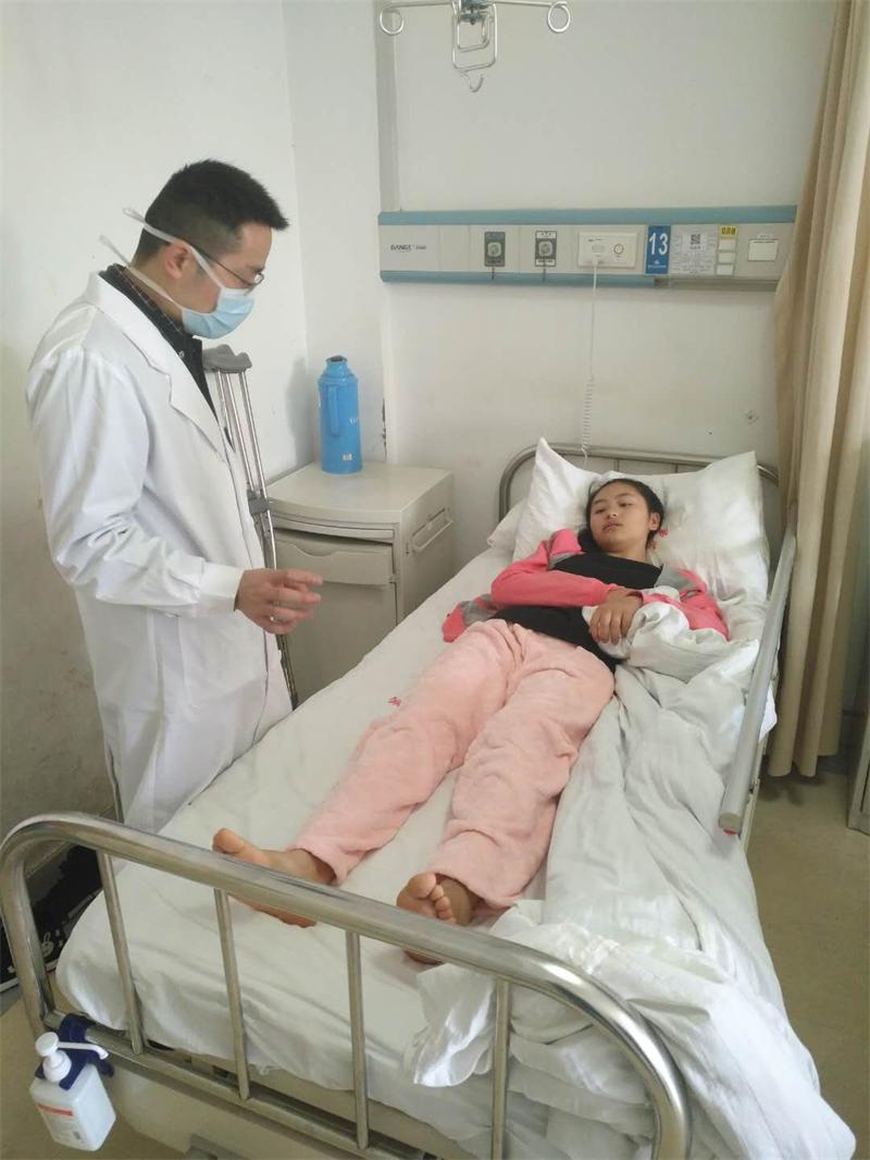 “感谢三峡医专!感谢学校领导长期以来对我的关怀,使我能够像正常人一样走路!”2019年4月1日,走马镇冒水村建卡贫困户孤女杨昌琴在三峡中心医院接受左侧髋关节置换手术后离院时深情地说道。