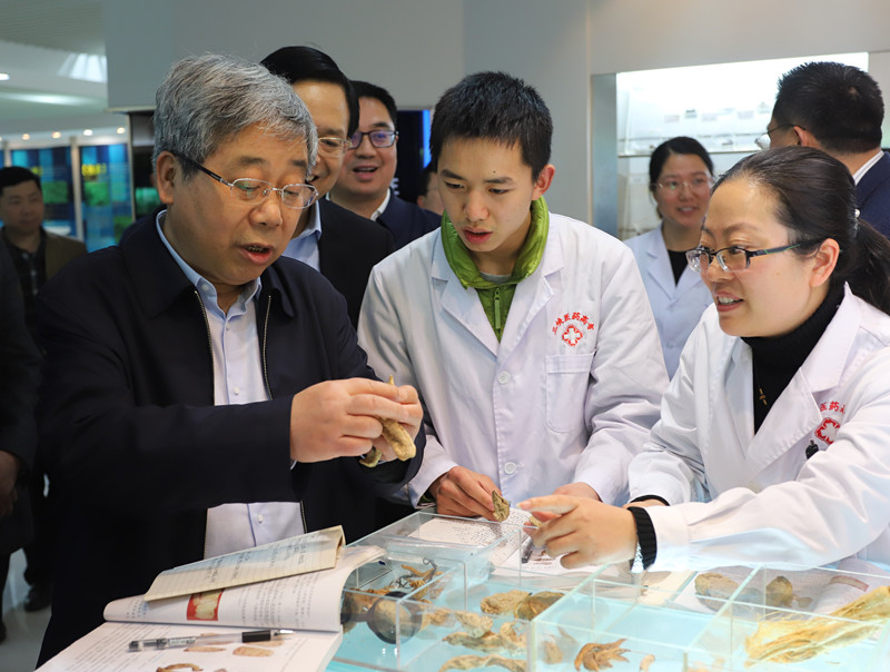 陈宝生部长一行首先来到学校中药科技馆,听取了学校在抢救和保护三峡库区中医药文化、支持三峡库区中药材产业发展和推进三峡库区生态文明发展等方面的工作汇报。在中药科技馆的药材真伪鉴别展台前,饶有兴致地与我校师生一起鉴别中药材的真伪。