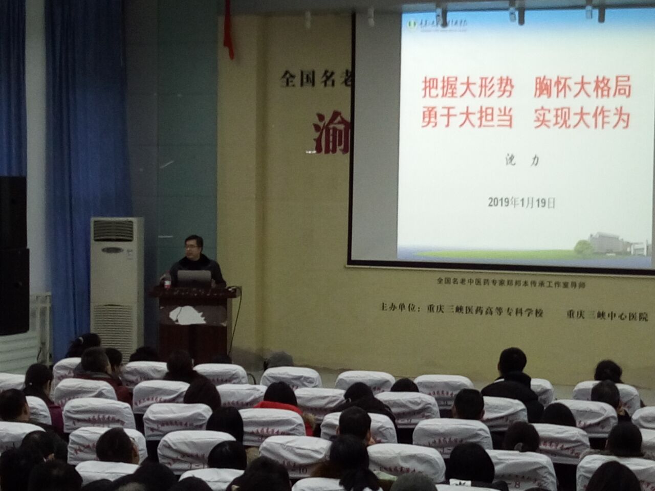 沈力副校长做了题为“把握大形势、胸怀大格局、勇于大担当、实现大作为”的工作报告。他从高职教育发展的大势、趋势、态势深刻解析了高职教育的新形势与新要求。指出国家发展进入战略转型期、改革深入期、发展机遇期,新时代产业大变革呼唤着职业教育的大变革,国家对高职教育要求更高,教育事业进入以提高质量为中心的发展阶段。鼓励大家要勇敢顺潮流而为,做有担当的教育教学管理者、做教书育人的践行者。在人才培养诊断与改进、校企合作、医学人才培养质量提升、专业建设、师资队伍建设、质量工程项目建设、创新创业教育、职业培训、国际合作上,要有大作为,用心写好医学教育奋进之笔。