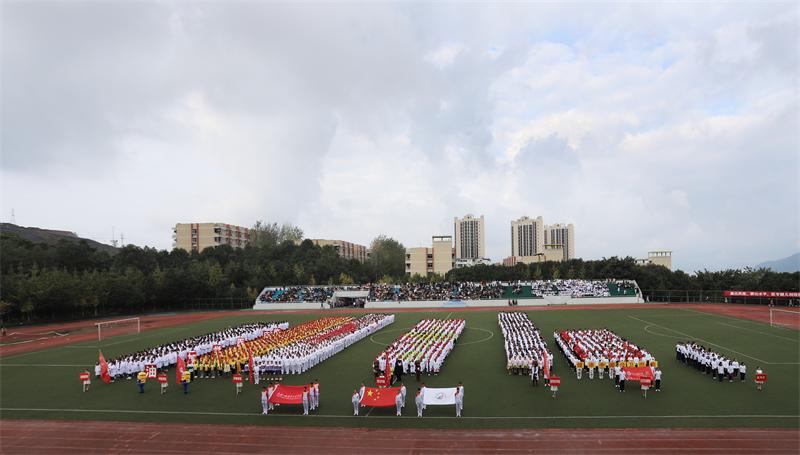 2018年11月8日上午8:30,重庆三峡医药高等专科学校秋季田径运动会开幕式在田径场隆重举行。学校党委副书记冉隆平、副校长谭工、副校长张建忠及各相关处室、院部的负责人出席开幕式。开幕式由学生处处长王国栋主持。学生代表、教师裁判员共计4000余人参加开幕式。