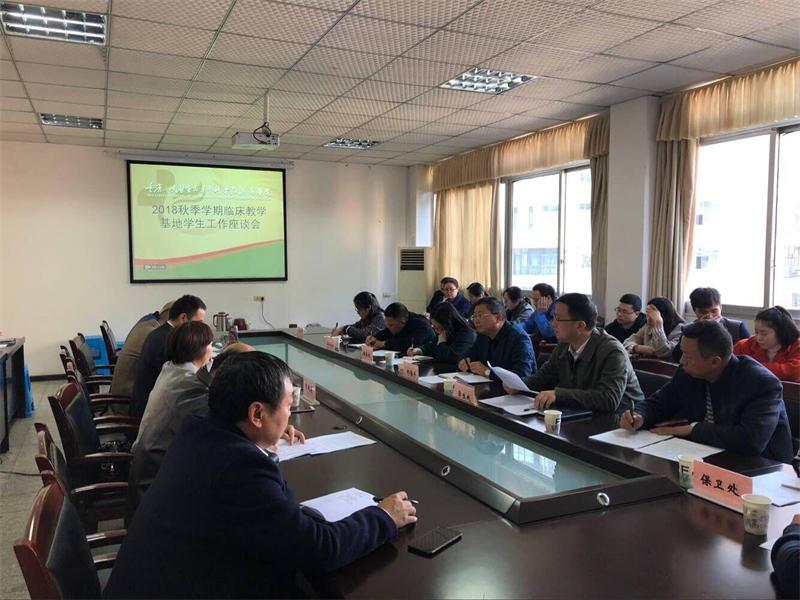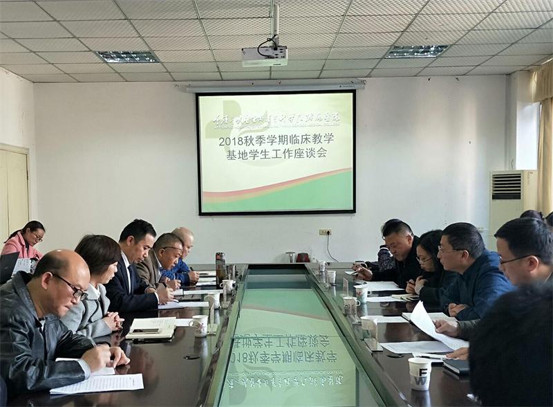 2018年11月8日下午,阳光明媚,暖意融融。2018年秋季学期临床教学基地学生工作座谈会在医院行政五楼会议室举行。来自临床医学专业1-6班、影像医学专业1-2班的16名学生代表参加了该座谈会。校领导冉隆平副书记、学校相关处室,临床医学院和医学技术学院领导出席座谈会并与学生现场交流,会议由临床医学院程晓莉副院长主持。