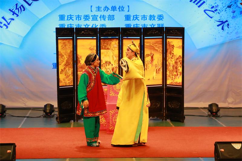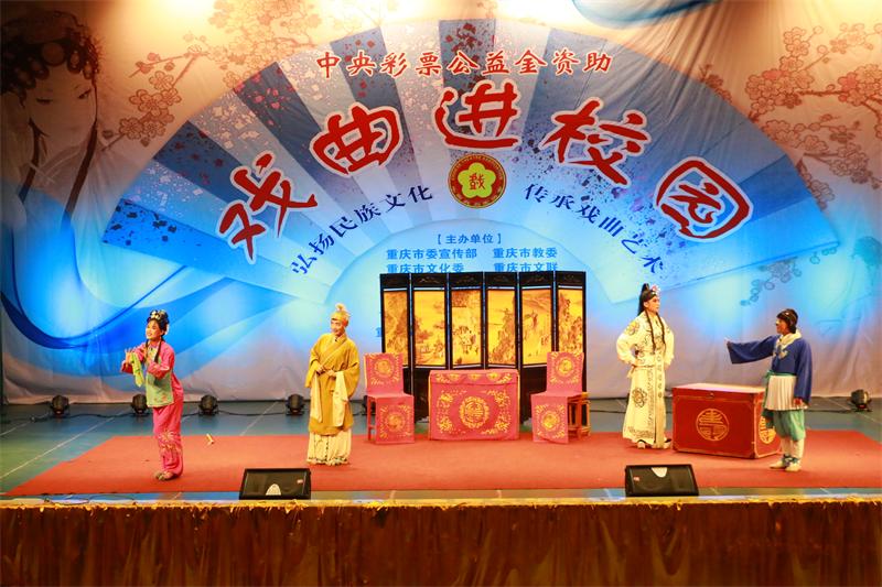 6月20日,由中共重庆市委宣传部、重庆市教委、重庆市财政局、重庆市文化委主办的2018年“戏曲进校园”走进我校,重庆市三峡川剧艺术研究传承中心的艺术家们为我校师生带来了一场丰盛的川剧盛宴,学校800余名师生代表观看了演出。