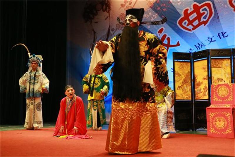 演出由《别洞观景》选段拉开帷幕,10余位“仙子”一登场即引来台下一片赞“美”声,而演员们则在没有任何道具的情况下,把天真烂漫的少女在山涧流水中戏花逗蝶的场景演绎得惟妙惟肖。《包公铡侄》则让师生在敬仰包公刚正廉明、执法如山的同时,感受到了花脸(净角)的雄浑唱腔。随后,一首通俗歌曲《你》,向大家展示了川剧艺术家的多才多艺。《迎贤店》讲述的是刻薄店妈对落魄书生前倨后恭的故事,艺术家用丰富的肢体语言、夸张的面部表情生动刻画出了店妈的唯利是图,即让人捧腹,又引人深思。《变脸·吐火》无疑是川剧的绝活,让人即惊且叹,引得现场掌声爆棚。《柜中缘》演绎的是宋代抗金英雄岳飞之子岳雷,为躲避官兵追捕,误入刘家,却成就一段姻缘的佳话。整个故事环环相扣,生、旦、丑各逞殊能,引得笑声、掌声、喝彩声此起彼伏。演出抢妆的间隙,艺术家们还为师生带来了川剧知识讲解,开展了有奖知识竞答,还邀请师生代表进行了川剧模仿比赛等,让师生对川剧有了更深入的了解和切身的体会。
