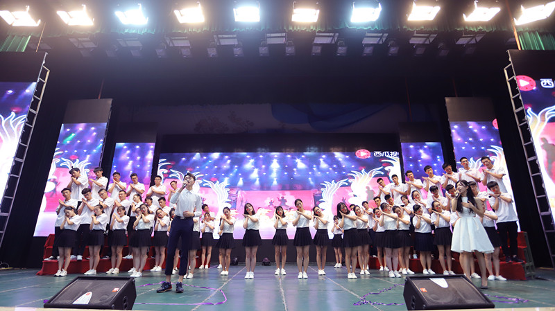 庆祝表彰大会后,举行了以“不忘初心 牢记使命”为主题思政课实践活动成果展演,参加本次展演的9个作品是从全校60多个班级3000余名学生中选拔出的思政课社会实践的优秀成果。展演分为“国学经典润无声”、“峥嵘岁月寄情怀”、“锐意兴革看今朝”和“腾飞梦想致青春”四个篇章,通过朗诵、演唱、舞蹈、情景剧等节目形式,展示我国复兴之路的辉煌历程。展演集中展示了学校思政教学部通过一系列的教学改革,将文化知识和实践活动结合起来,采用灵活多样的课程教学形式,吸引了广大青年学生自觉学习新思想,主动投身社会主义建设,以青春梦共绘“中国梦”的教学育人成果。