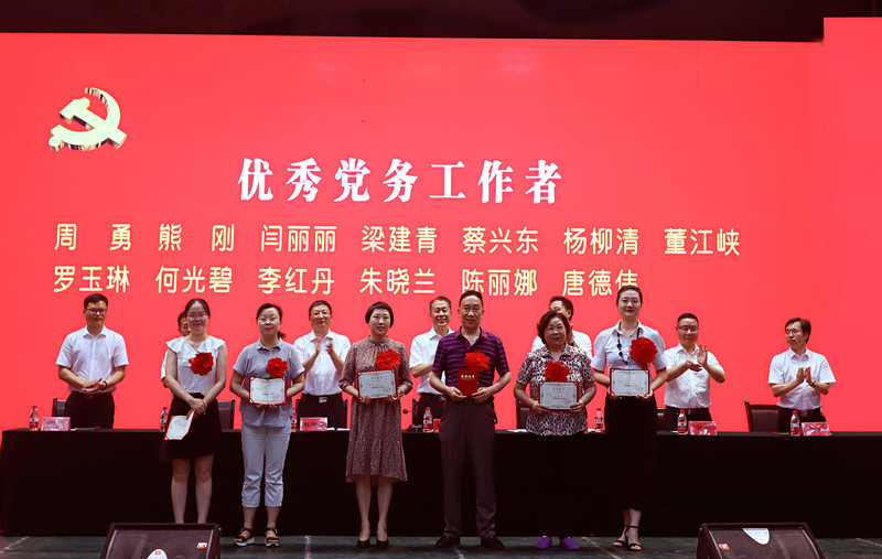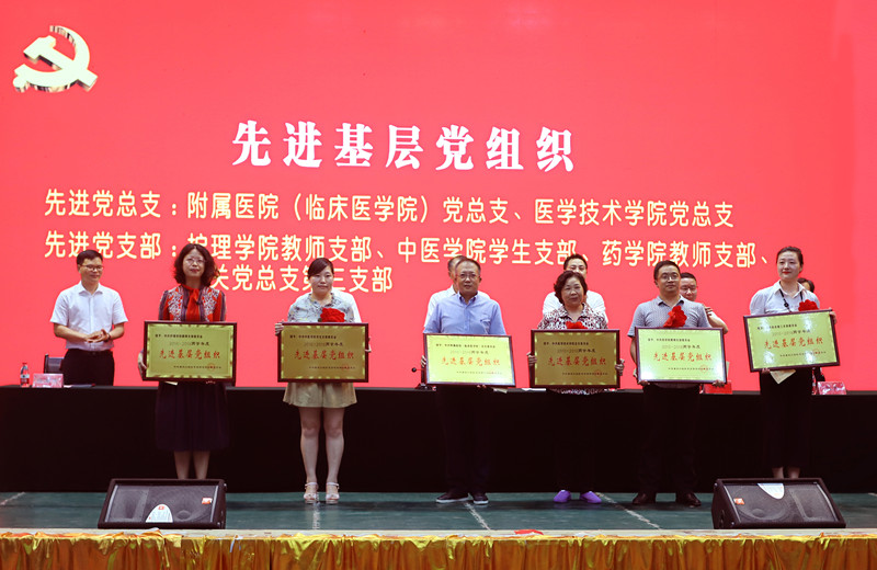 党委书记周建军代表学校党委向全校党员同志们表示亲切的问候,向受到表彰的先进集体和个人表示祝贺。他强调,两年来,学校深入学习贯彻落实党的十九大精神,深学笃用习近平新时代中国特色社会主义思想,坚持社会主义办学方向,深入推进“两学一做”学习教育常态化制度化建设,以党的建设促进各项事业科学发展。他号召学校学校基层党组织和广大党员要以先进为榜样,在学校事业发展中做出新的更大的贡献。他对基层党组织和广大党员提出六点期望:一是要深学笃用习近平新时代中国特色社会主义思想,深入贯彻党的十九大精神,以马克思主义中国化最新成果指导学校建设。二是要提高政治站位,增强“四个意识”。三是要坚定理想信念,增强责任感和使命感。四是要履职担当作为,发挥党组织和党员的核心示范作用。五是要强化作风建设,永葆清廉的政治本色。六是要立德树人,做合格建设者的指导者和引路人。他鼓励大家要始终保持昂扬向上、只争朝夕的精神状态,为把我校建设成为全国一流医药高等职业院校而努力奋斗!