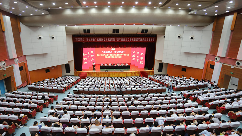 为隆重庆祝中国共产党成立97周年,进一步展示学校思想政治教育工作成果,6月26日下午2:00,学校在学术中心演播大厅举行纪念建党97周年庆祝表彰大会暨思政课实践活动成果展演。学校领导、全校教职工、学生发展对象、入党积极分子代表800余人参加会议。校长、党委副书记陈地龙主持会议。