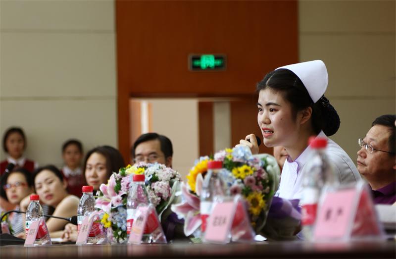 首先大赛一等奖获得者蔡艳同学和优秀指导教师获得者方淑蓉老师依次发言,她们用朴素的语言和真挚的情感,汇报了本次参赛的心得和体会,分享了成绩取得过程中的艰辛与不易,同时表明了决心。蔡艳同学说到为了梦想而坚持训练,从来都不觉得枯燥,特别感谢每一位指导老师,是她们用高标准成就了她。方淑蓉老师表示,本次大赛历史性成绩的突破,虽然付出了辛劳,但收获更多,得到的不仅仅是荣誉,更是作为三峡医专护理人的自信。她们表示将继续践行“学则恒心、医者仁心”校训,更加努力,不忘初心,砥砺前行。
