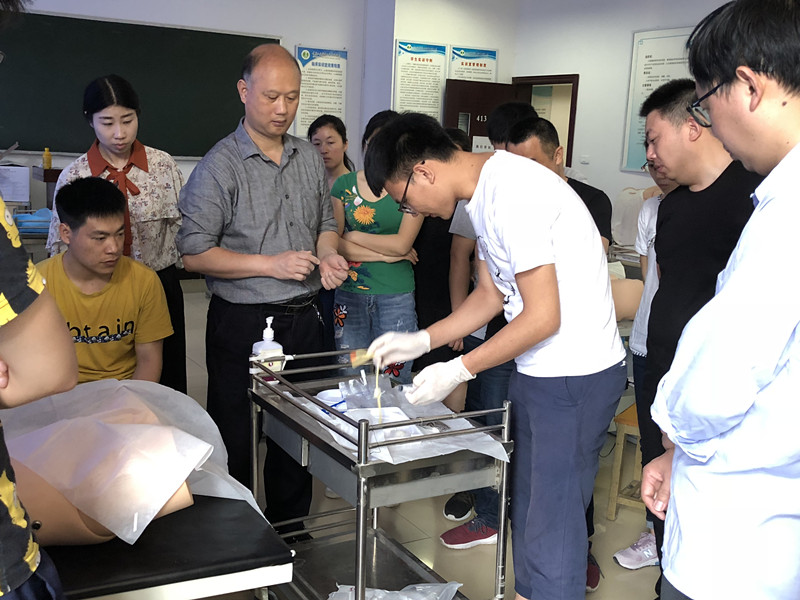 为做好本次培训工作,职业培训部立足早、抓实细,会同中医系、临床医学系进行了周密部署与精心安排。面对教学资源占用量大、师资调配困难等问题,在保障日常教学正常开展的前提下,中医系、临床医学系优先安排教学资源,提供了实训室7间及专门教室,并选派了 22 名经验丰富的教师参与培训工作。培训重点针对执业医师考试20余项技能操作和常见病诊治等知识模块进行深入浅出的辅导。期间,为保障培训效果,我校为参培学员统一安排提供了食宿。