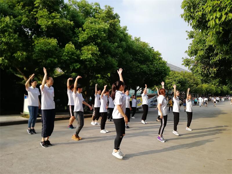 《全民营养歌》是中国营养协会为了配合全民营养周的宣传活动专门谱写的一首接地气的歌曲。5月18日下午,公卫系组织同学在食堂门口开展了《全民营养歌》的快闪表演。30余名同学用活泼轻盈的舞步、灿烂自信的笑容,表演了一场精彩欢快的“快闪”秀。表演聚集了大量的人气,过往的同学们纷纷跟着跳动起来,一些同学拿出手机记录这超燃的活动。