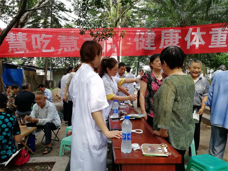 5月19日下午,全民营养周宣传活动走进五桥富民花园社区。公卫系为社区居民带来了膳食金字塔知识宣讲,膳食指南趣味答题,志愿者为社区居民测量血压、血糖及皮下脂肪数等服务。