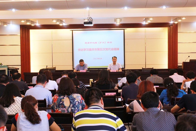 6月6日下午,学校党委在行政楼418会议室组织6月中心组学习,传达学习重庆市第五次党代会精神。学校领导;中层干部;各总支书记,支部书记;思政课专兼职教师;专职辅导员100余人参加学习。党委副书记冉隆平主持学习。
