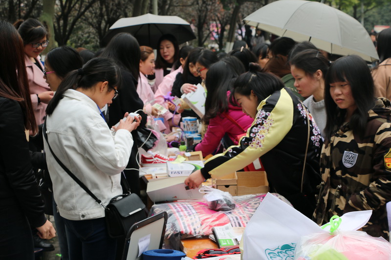 购物是女生的天性,这也造就了大量自己用不太上又舍不得丢的闲置物品。针对这一问题,3月7日女生“跳蚤市场”引爆校园。女生们有的“以物易物”,有“爱心义卖”,有的干脆就“送”目的是为自己“宝贝”寻得“有爱新主人”。在短短的几个小时间,数千人次女生进入了市场,335件物品达成了交易。同学们认为活动不但有趣、有益,自己也受到了理性消费的教育。