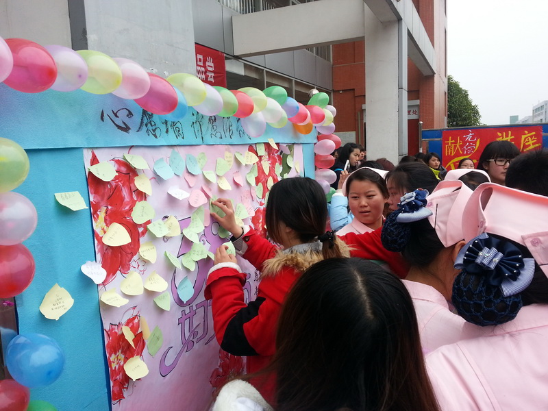 “三八”妇女节系列活动从3月6日便拉开了帷幕。在食堂门口的“心愿墙”上,全校女生通过小小的纸条寄托了自己对老师、母亲、姐妹、好友等的美好祝福,写下了自己与祝福对象共同的梦想。一个个情真意切的文字,一行行暖人心扉的语句、一张张祝福满满的纸条让所有人都感受到了阳光般的温暖。