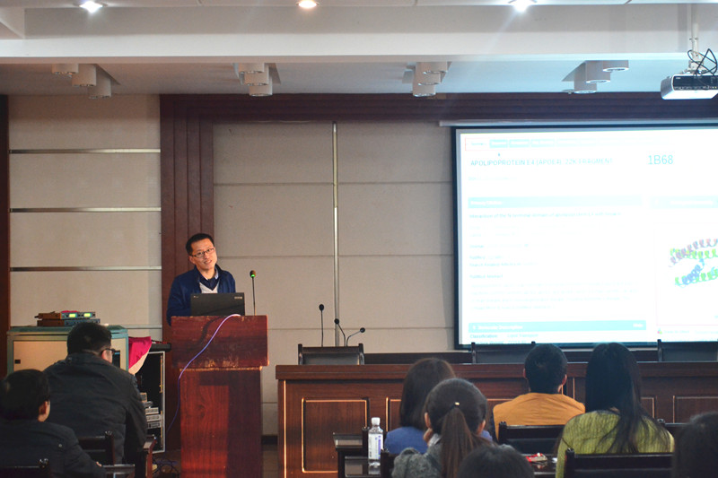 倪博士向我们展示了生物学数据库的产生、分类以及在科研中的重要性,随后详细的介绍了几个主要的数据库---NCBI数据库、UniProt蛋白序列数据库、PDB蛋白结构数据库,包括如何检索数据库、获得数据后怎么分析、怎么向数据库提交实验数据。讲座结束后,各系部的老师对自己实验中遇到的问题向倪博士进行了提问。倪博士的讲座内容丰富并非常实用,使在座的老师们受益匪浅,对于科学研究也有了更深入的认识。