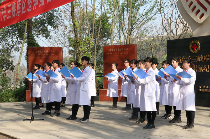 3月28日上午,三峡库区遗体器官捐献缅怀纪念活动在万州区沱口生命纪念园举行,重庆市红十字会负责人,万州区、垫江区、开州区、梁平区、奉节县、忠县、巫山县、巫溪县等8个区县的红十字会负责同志,遗体捐献者家属代表,我校师生代表共计200余人怀着无比崇敬的心情聚集在沱口公墓遗体捐献纪念碑前,深切缅怀和纪念三峡库区遗体器官捐献者们高尚的情操,祭奠那些令人肃然起敬的捐献者们的英灵,寄托我们的哀思。