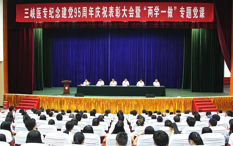 为庆祝中国共产党成立95周年,扎实推进“两学一做”学习教育,6月28日下午2:30,学校在学术中心演播大厅举行纪念建党95周年庆祝表彰大会暨“两学一做”专题党课。会上表彰了2014-2016两学年度在学校建设发展中涌现出来的先进基层党组织、优秀共产党员、优秀党务工作者。党委书记周建军为全校党员讲 “两学一做”专题党课。学校领导,受表彰的先进组织、先进个人,全校党员,发展对象、入党积极分子代表800余人参加会议。党委副书记冉隆平主持会议。