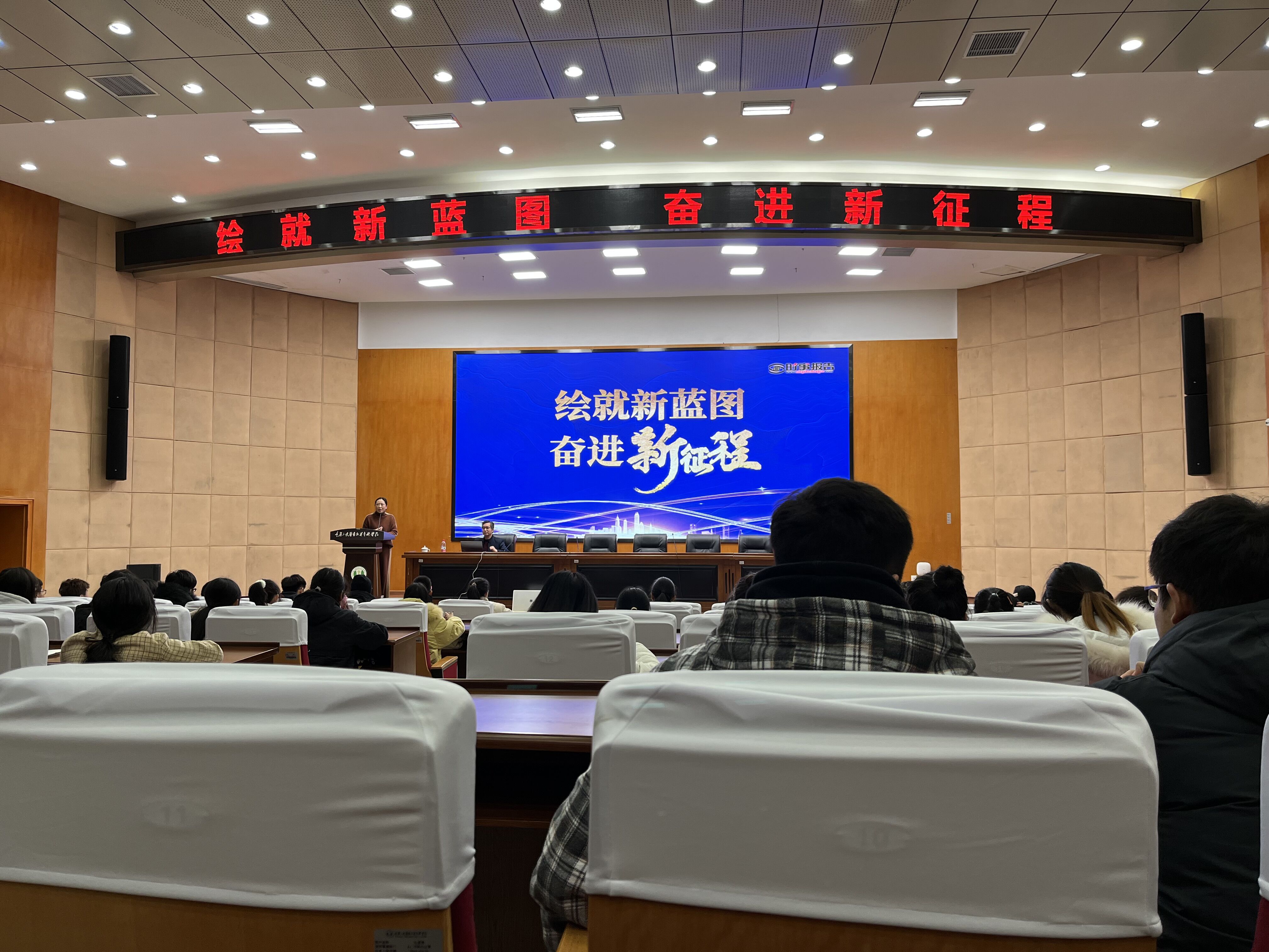 奋进新征程”形势与政策专题讲座。讲座由医学技术学院党总支书记罗玉琳同志主持,来自医学检验技术专业120余名学生及班级辅导员老师聆听了讲座。