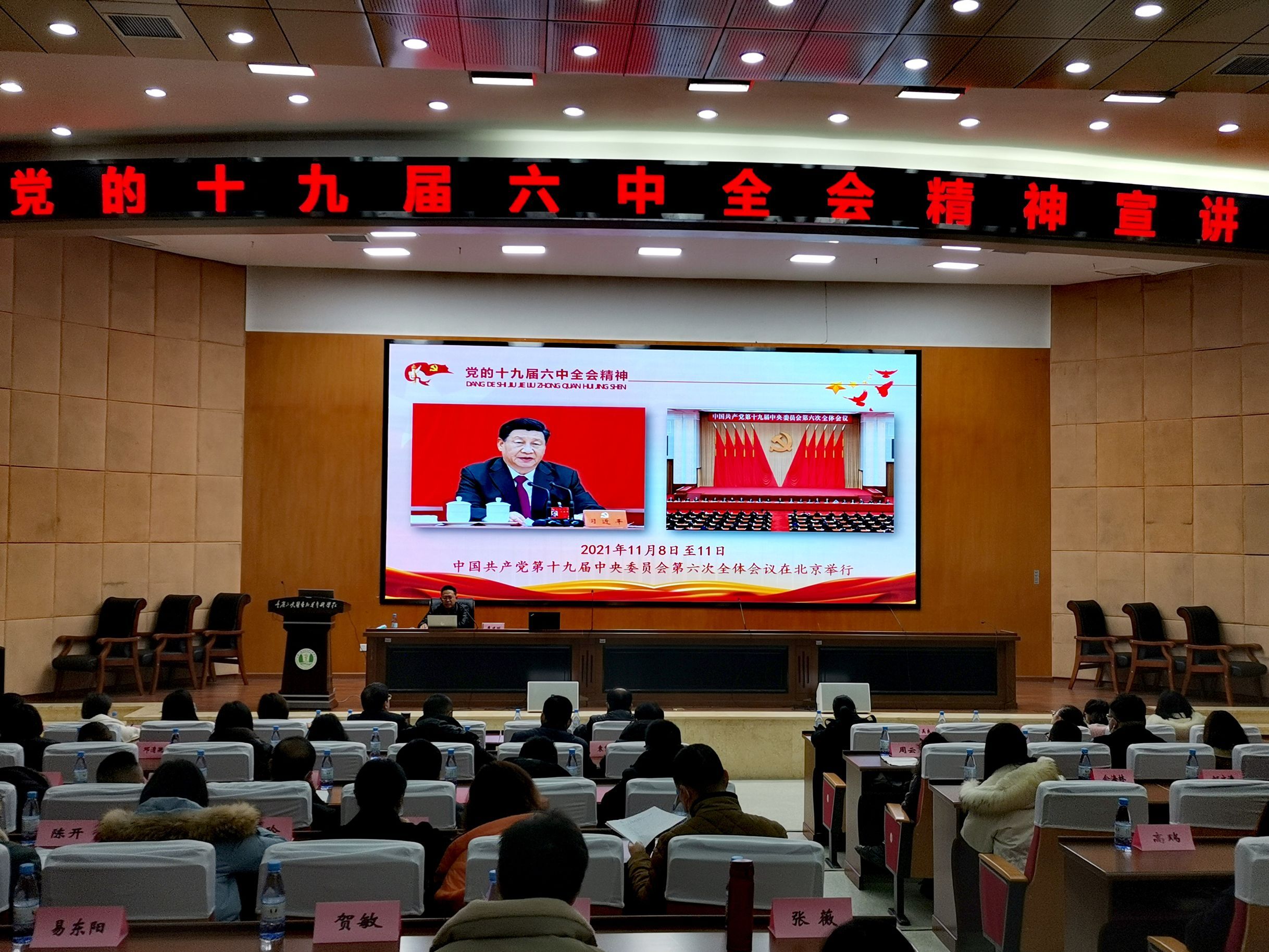 廖建明书记围绕深刻认识总结党的百年奋斗重大成就和历史经验的重大意义,深刻认识党的百年奋斗的初心使命和重大成就,深刻认识中国特色社会主义新时代的历史性成就和历史性变革,深刻认识党的百年奋斗的历史意义和历史经验,深刻认识以史为鉴、开创未来的重要要求,深刻认识从党的百年奋斗历程中汲取智慧和力量的具体路径6个方面,详细解读了党的十九届六中全会精神。