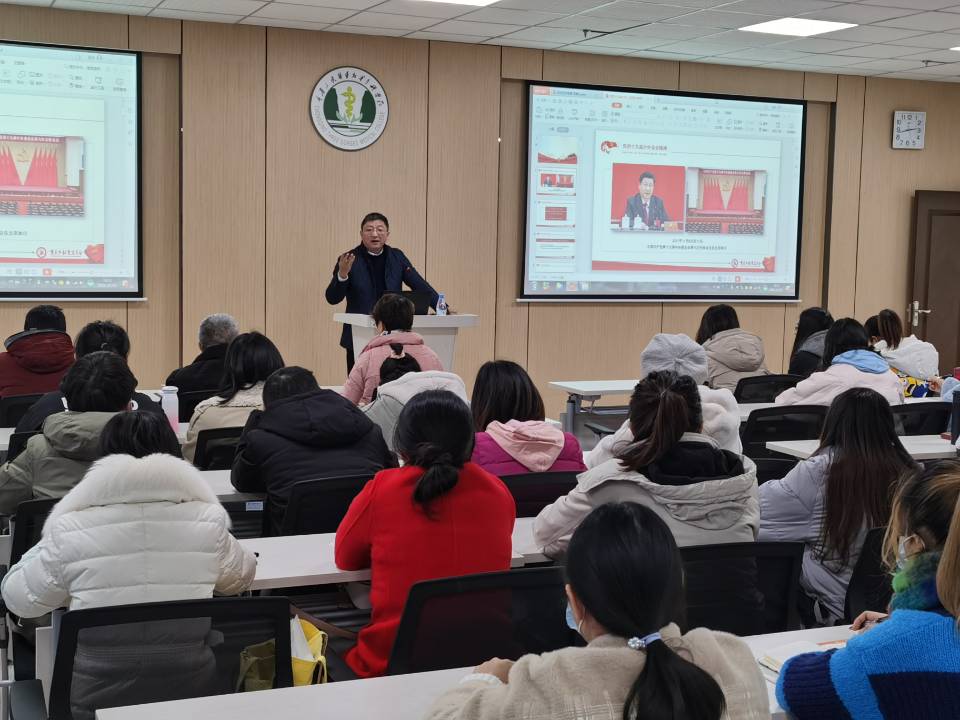 12月21日下午,学校党委副书记冉隆平在学生活动中心210会议室,为马克思主义学院、药学院宣讲了党的十九届六中全会精神,两院师生共计120余人参加讲座,药学院党总支书记董江峡主持。