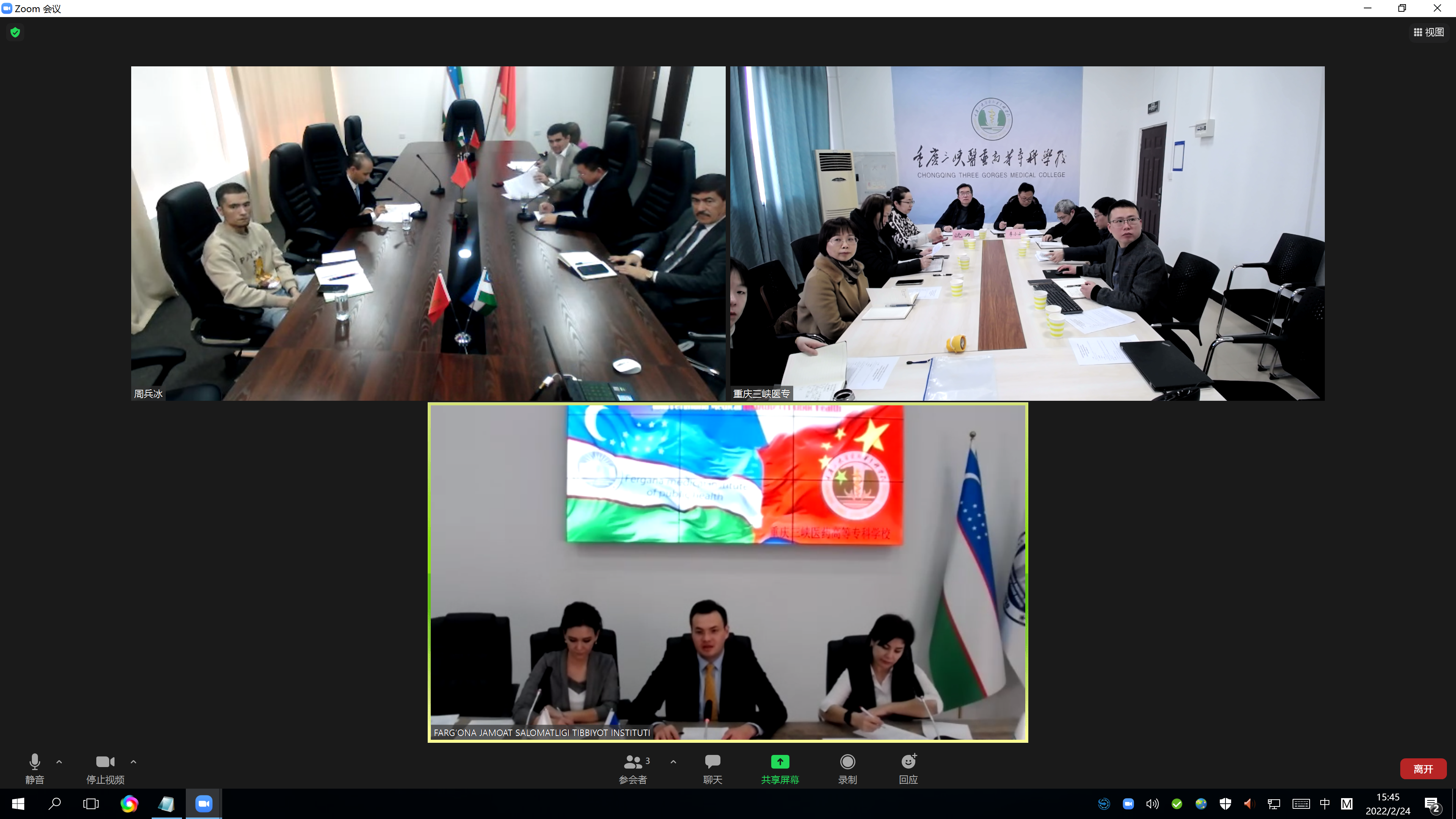 2月24日,学校与乌兹别克斯坦费尔干纳公共卫生医学院就国际交流合作开展线上交流。学校副校长沈力、李小山,费尔干纳公共卫生医学院院长Sidikov出席会议,科技处、药学院、中医学院、护理学院、临床医学院、公共卫生与管理学院负责人及相关工作人员,费尔干纳公共卫生医学院Djorayew副校长等人参会。