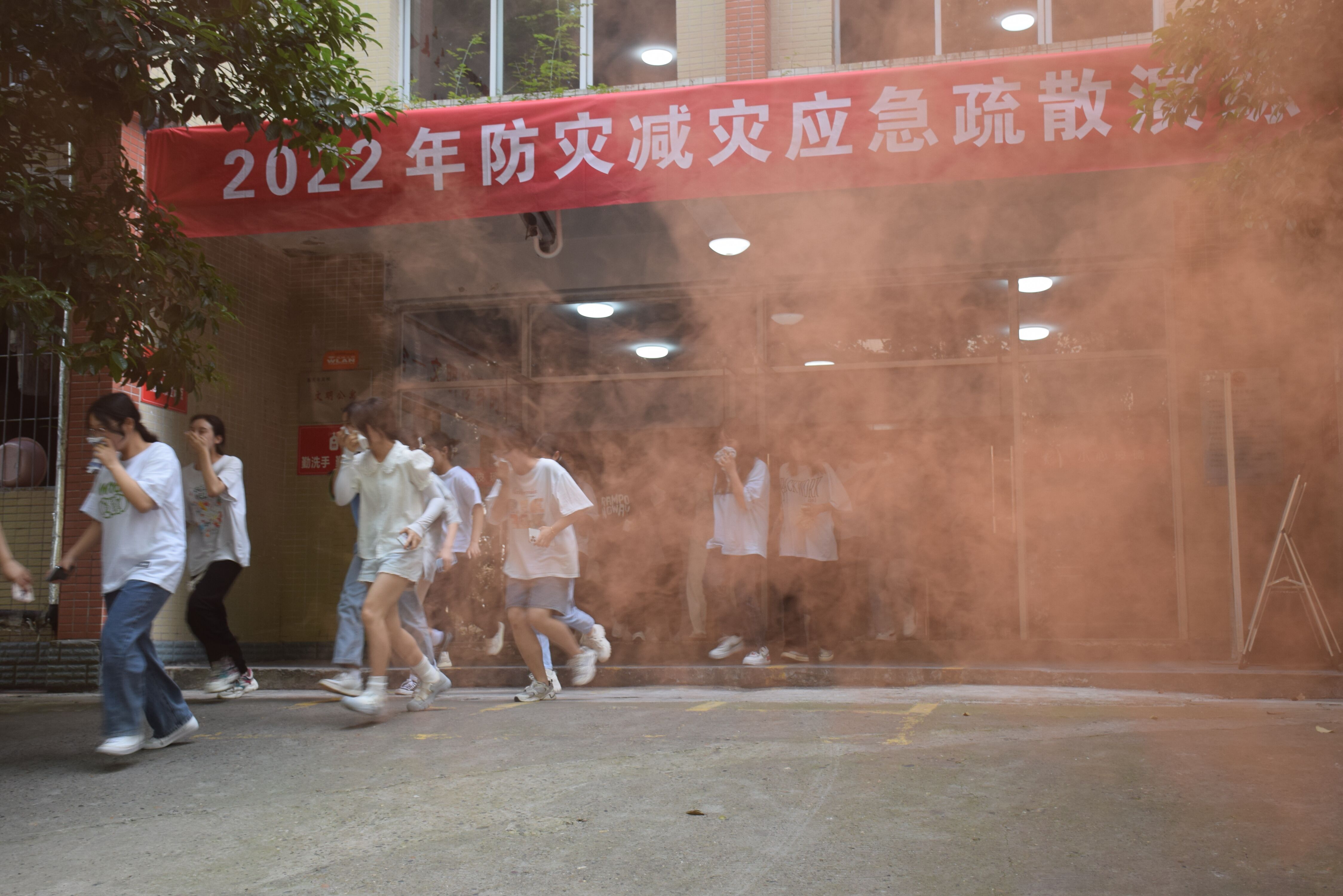 二是大力开展防灾减灾应急疏散演练。学校在扎实抓好主题教育宣传活动的同时,有针对性地开展消防应急疏散演练活动。5月12日下午,一场模拟火灾发生的应急疏散演练活动在学生公寓9栋举行。随着火灾警报的拉响,拨打报警电话、启动预案,600余名学生用湿毛巾捂住口鼻弯腰前行,3分钟内所有学生快速而有序地撤离到开阔地带,电工切断电源,楼层安全员对每个寝室逐一排查,消防队伍开展灭火救援,整个过程有序开展,达到了预期的目的,取得了圆满成功。