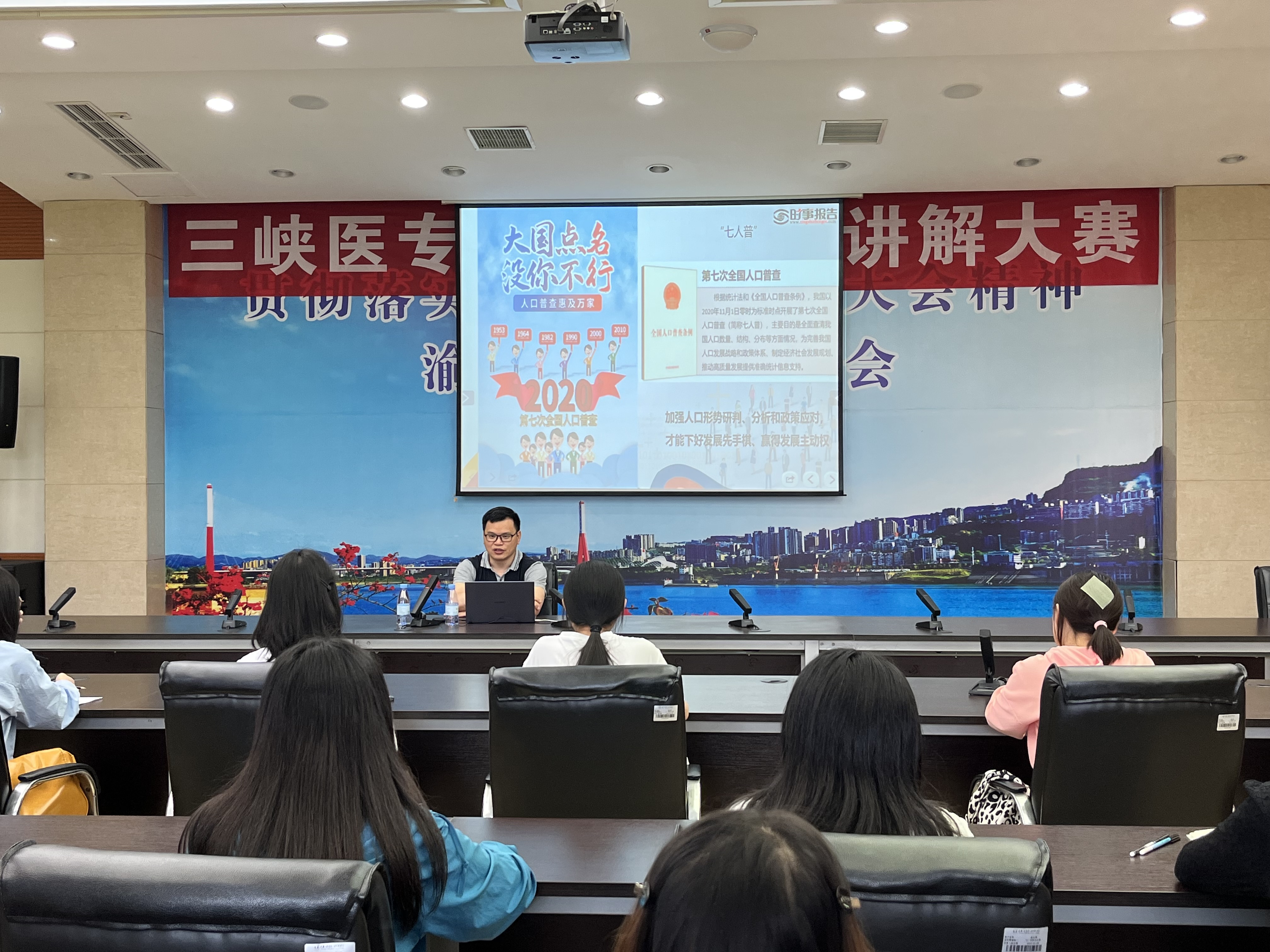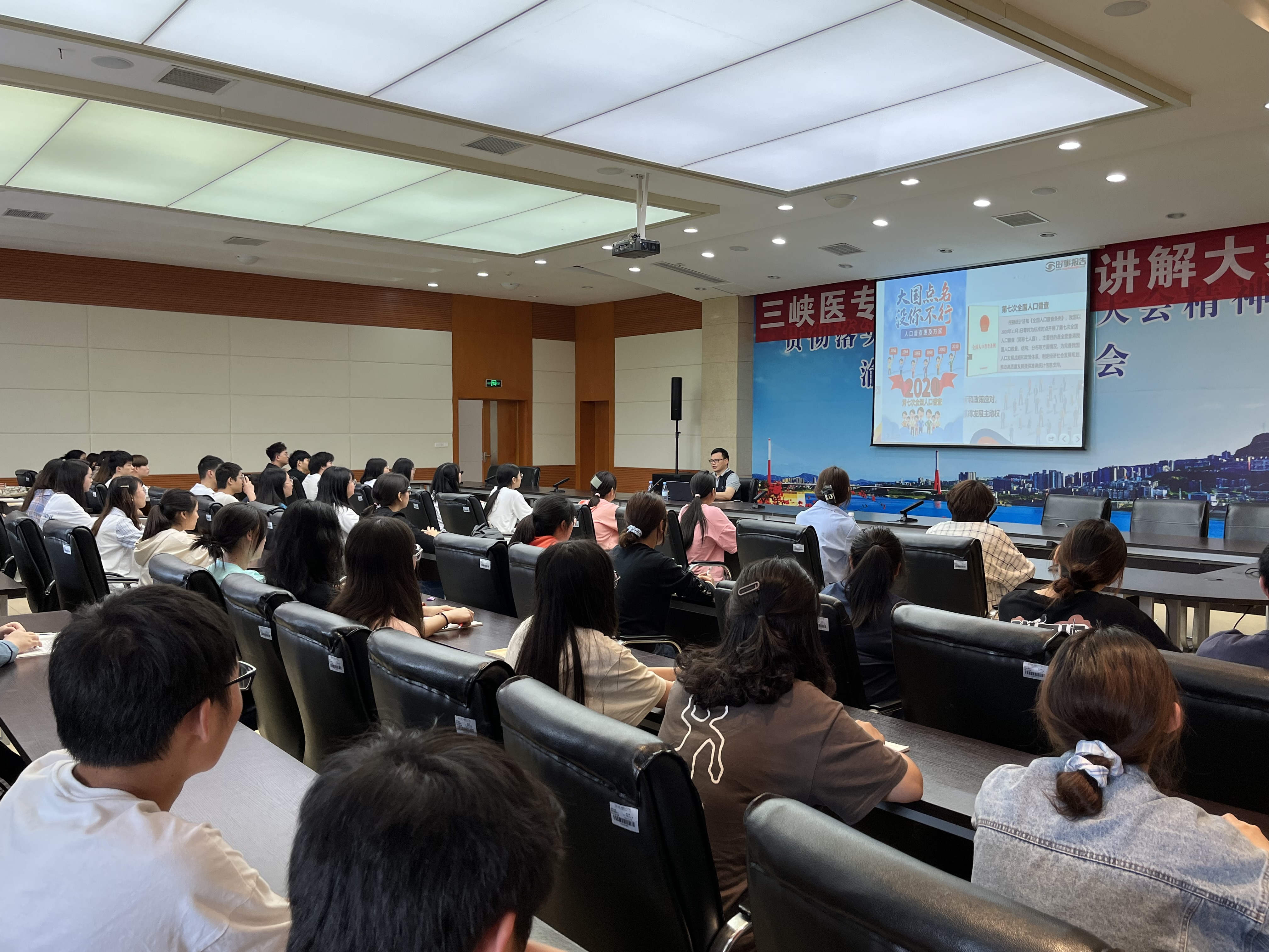 5月26日,学校副校长张建忠在学术中心205会议室,以“正确认识我国人口问题”为主题,为2021级口腔医学技术1班60余名学生上形势与政策课。