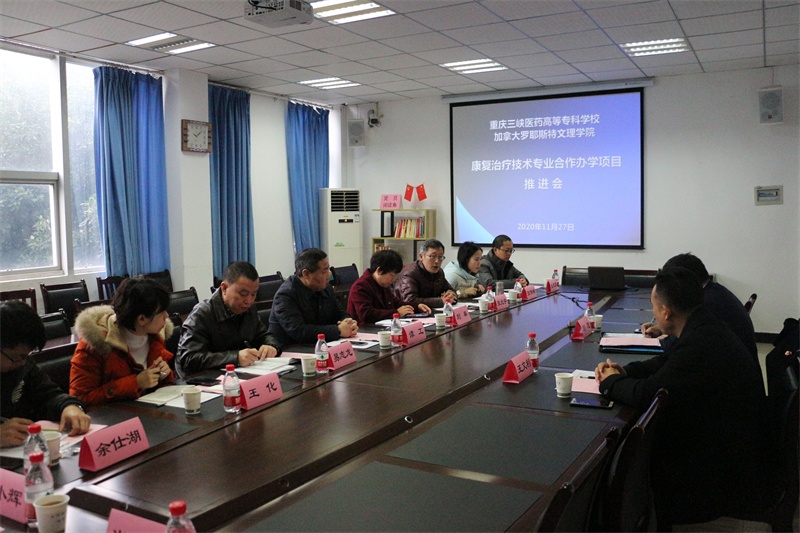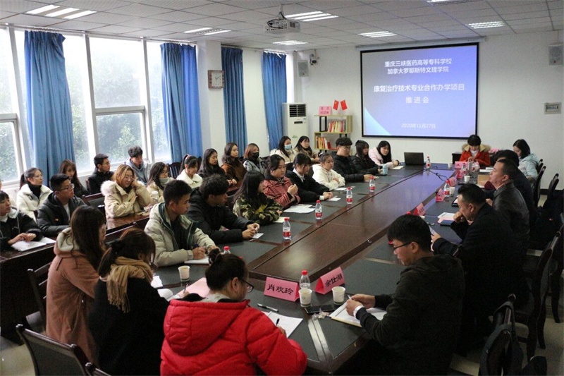 11月27日,学校举行康复治疗技术专业中加合作办学项目工作推进会,加拿大罗耶斯特文理学院校长中国执行顾问刘旭、宏瑞国际教育办公室主任王文利,学校副校长谭工,科技处、中医学院负责人,康复治疗技术专业教师代表以及2020级中加合作班全体学生参加。中医学院副院长易志龙主持。