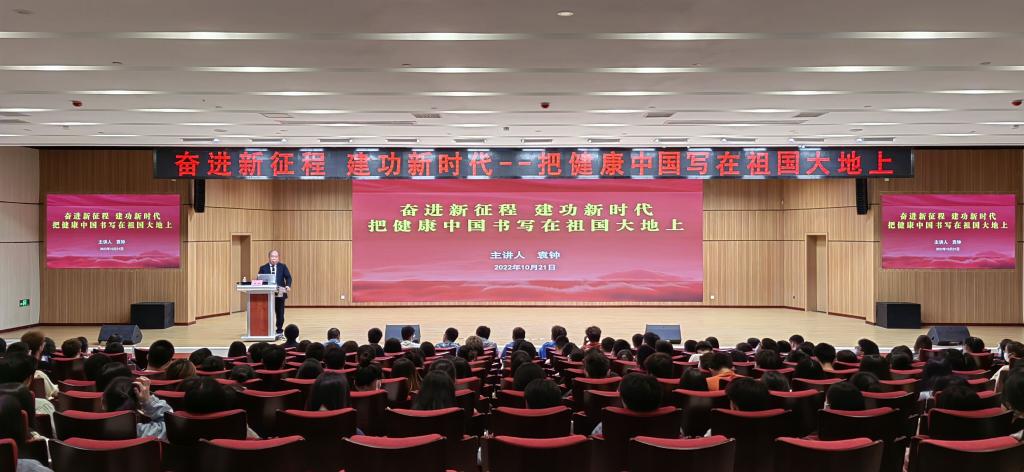 10月21日,国家卫健委生命伦理专家委员会委员、中国人口文化委医学人文与科普分会会长,中国医师协会医学人文专业委员会常务副主委、总干事袁钟教授来校,作了题为《奋进新征程,建功新时代,把健康中国书写在祖国大地上》的专题报告。学校党委副书记冉隆平,中医学院、临床医学院负责人及300余名师生参加了专题报告会。