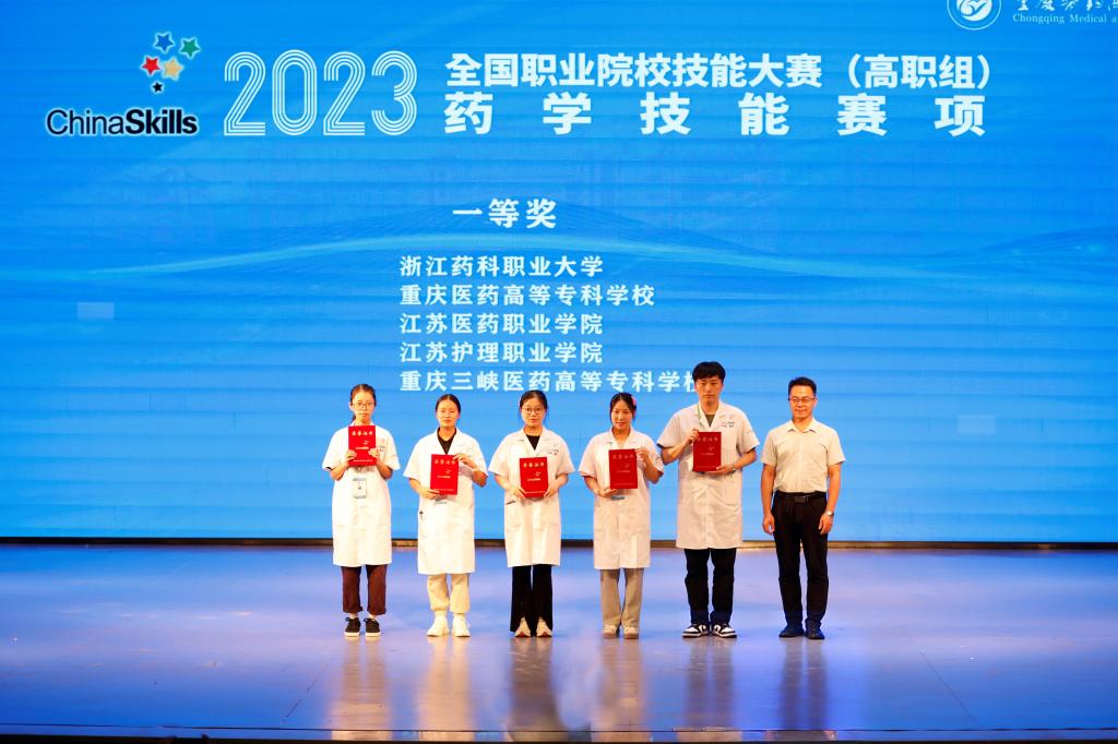 2023年9月21-23日,2023年全国职业院校技能大赛药学技能赛项在重庆医药高等专科学校举行。我校药学院药学专业周洁同学斩获大赛一等奖,王俊老师获得优秀指导老师称号。
