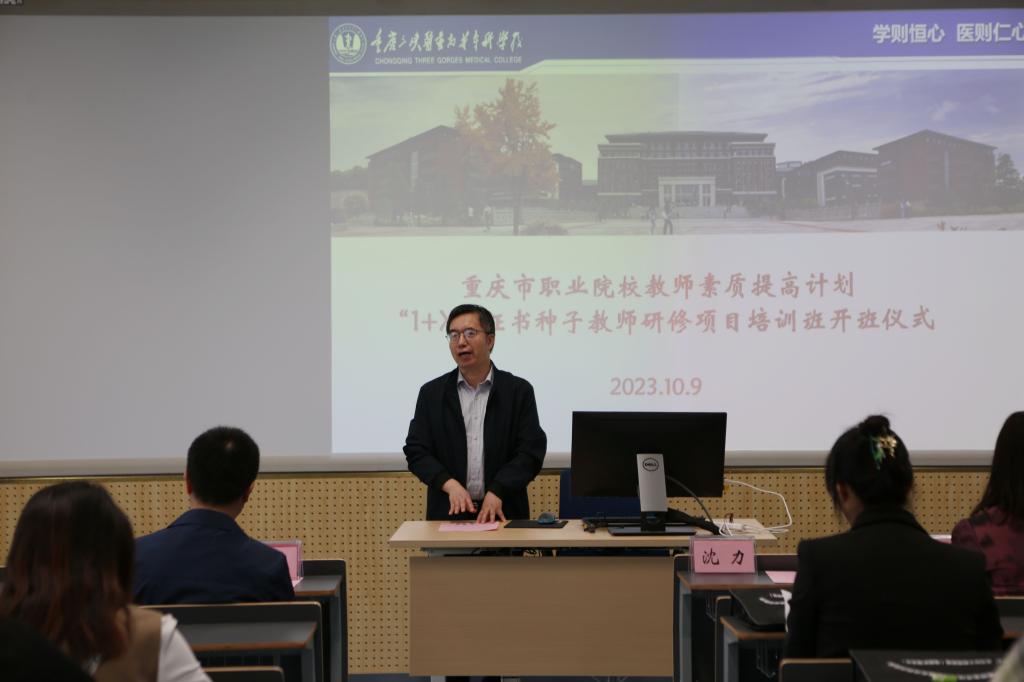 10月9日,2023年职业院校教师素质提升计划国家级培训项目“1+X”母婴护理证书种子教师研修班在我校顺利开班。学校副校长沈力出席开班仪式并致辞,合作交流中心主任李魁华,护理学院院长左凤林、副院长李为华,相关工作人员及全体学员参加。开班仪式由李魁华主持。