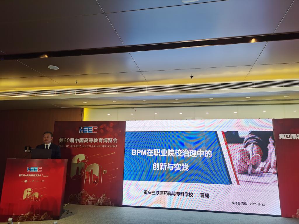 10月12日-14日,第60届中国高等教育博览会在青岛红岛国际会议展览中心举行。学校党委书记曹毅应邀出席第四届科技赋能教育系列报告活动,并作《BPM在职业院校治理中的创新与实践》主旨报告。