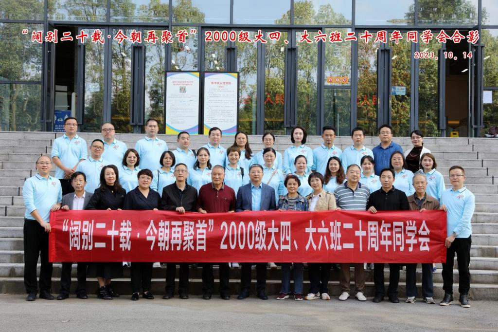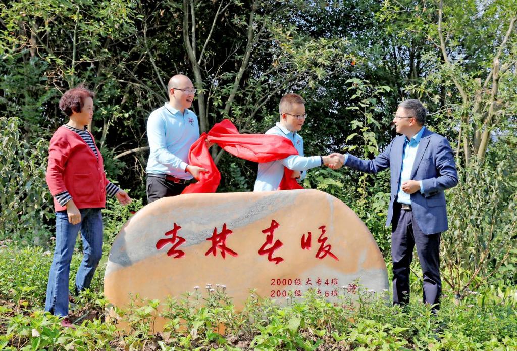 枫叶飘红、瓜果飘香,学校2000级中西医结合专业大四班、大六班暨2001届学生会的校友们喜迎毕业二十周年。10月14日,怀着对母校的深情牵挂,校友们再次相聚在校园内,共叙同学情谊,共襄学校发展,并举行景观石捐赠揭幕仪式及联谊活动。学校党委副书记、校长冉隆平,学生处、中医学院、药学院负责人,2000级大四班、大六班班主任黄晓萍及部分任课教师、在校生代表参加。
