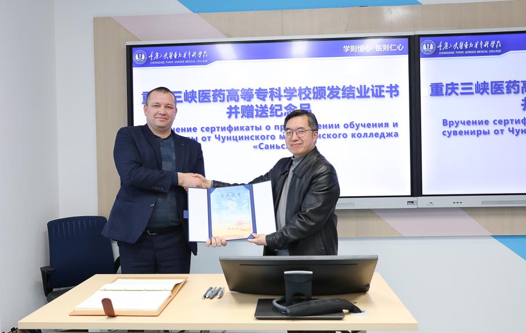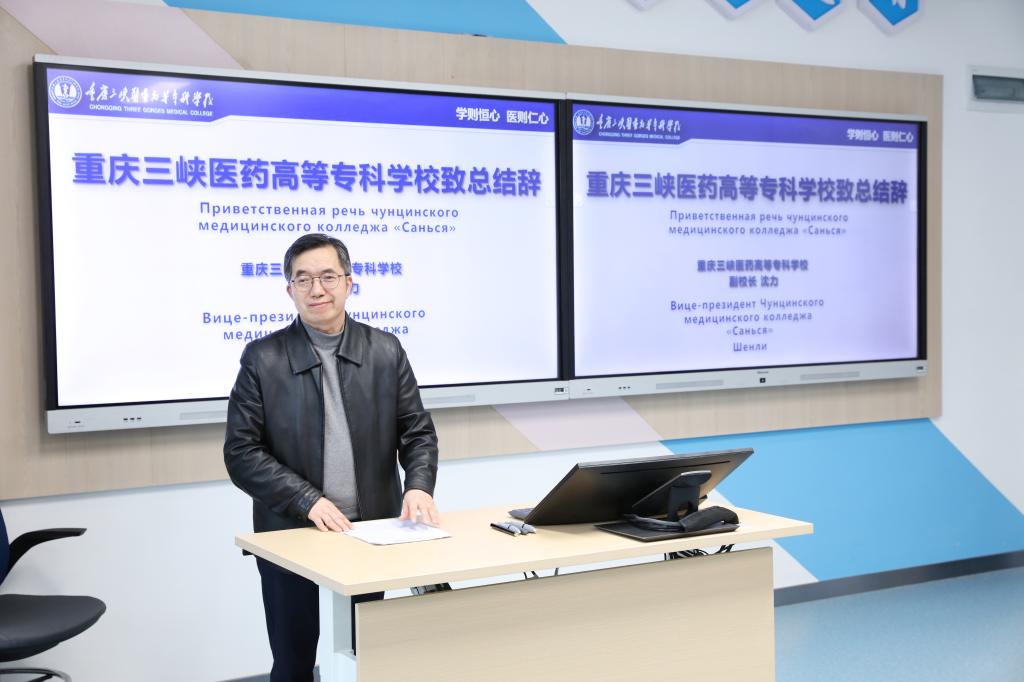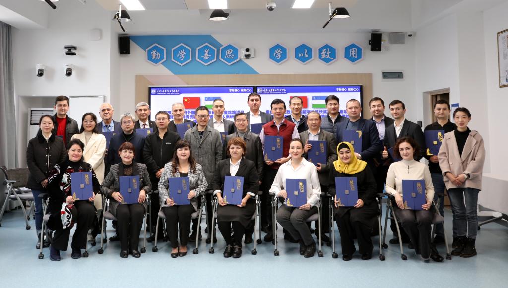 11月24日下午,重庆市人民政府外国留学生市长奖学金丝路项目“乌兹别克斯坦传统医学中高级管理人员研修班”在学校第四教学楼504智慧教室举行结训仪式。万州区宣传部干部黄孝贵,学校副校长沈力出席结训式,药学院、图情信息中心等相关部门负责人,研修班全体学员参加。结训仪式由图情信息中心主任曾岗主持。