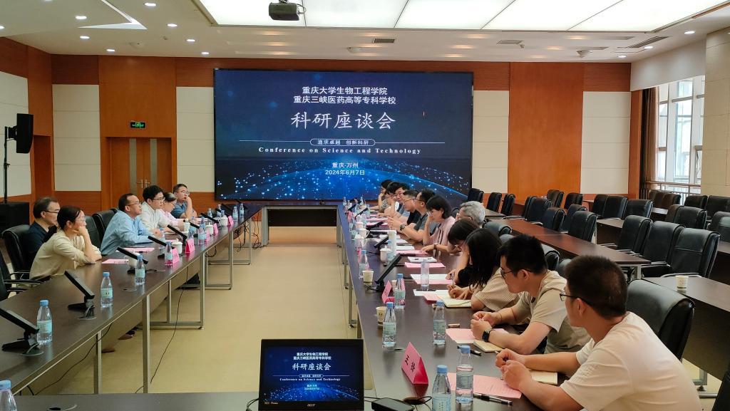 座谈会上,李小山致欢迎辞。张永慧汇报了学校的科研工作情况。侯文生介绍了重庆大学生物工程学院的科研情况并表示,希望后续双方进行更多的交流,收集科研骨干合作意愿,取长补短,从而创收更优质科研成果。随后参会人员就项目申报、科研思路、科研成果和平台搭建等方面展开进一步交流。