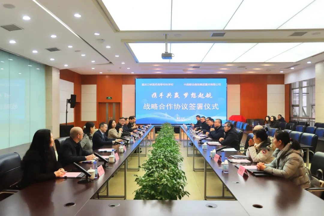 2025年1月2日下午,学校与中国移动通信集团重庆有限公司战略合作协议签署仪式在学术中心205会议室举行。中国移动通信集团重庆有限公司党委委员、董事、副总经理雷雪梅,市场经营部总经理刘钧,万州移动总经理何虹霖,学校党委书记曹毅,校长冉隆平,副校长沈力、李小山、邓雪松出席签约仪式,双方相关部门负责人20余人参加签约仪式。