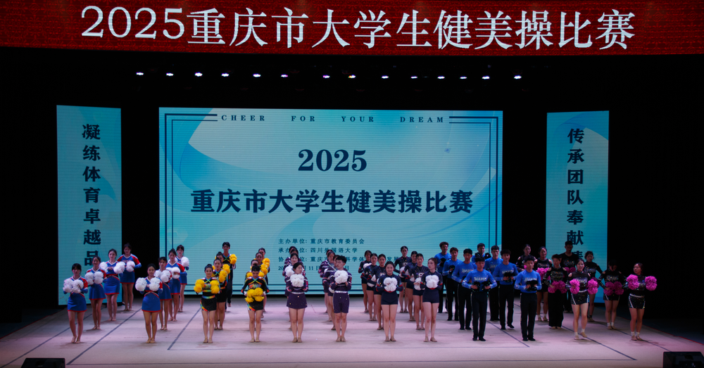 作为重庆市极具影响力的体育赛事,本次大学生健美操比赛将竞技性、观赏性与艺术性完美融合,不仅是对参赛队伍技术水平、身体素质的全面检验,更着重考察团队协作与创意表达能力。来自全市40所高校的816名运动员齐聚一堂,展开激烈角逐。比赛分设甲、乙、丙三组,我校健美操队积极参与乙组竞技健美操女单、男单,啦啦操双人街舞、双人花球,以及排舞自选曲目、排舞开放曲目、体育舞蹈等7个项目的比拼。