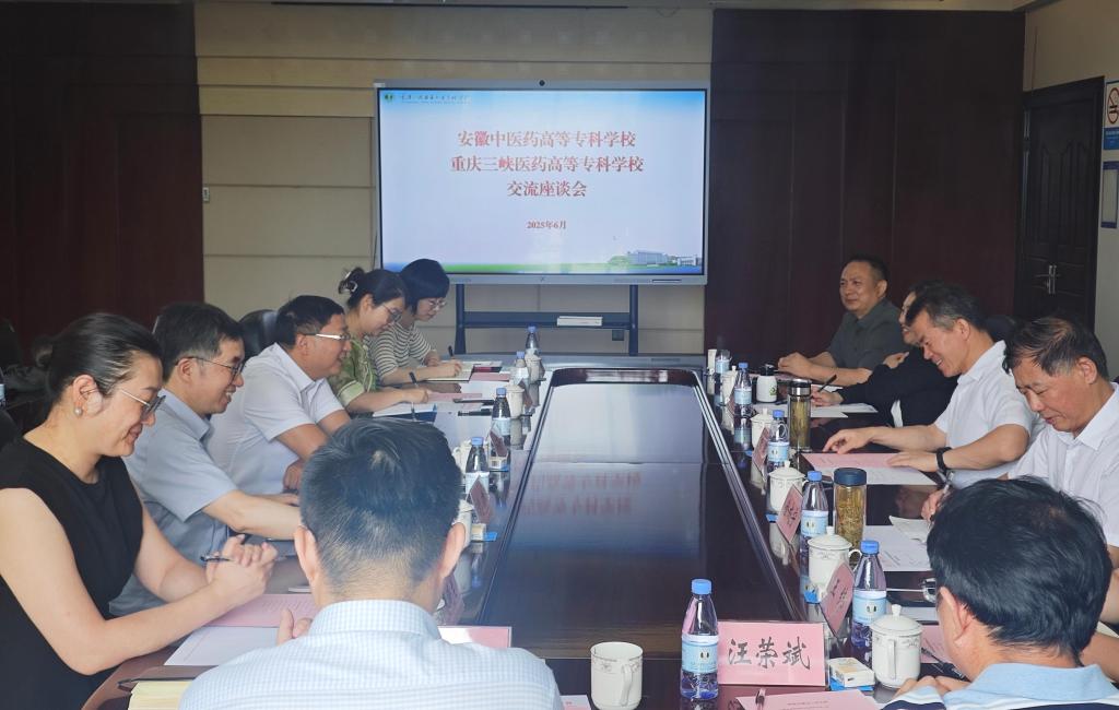 6月19日,安徽中医药高等专科学校党委副书记、校长韩军一行7人来我校考察交流并召开座谈会。学校党委副书记、校长冉隆平,副校长沈力、苏绪林;党政办公室、党委组织部、人事处、发展规划处等部门负责人及相关同志参加座谈会。会议由冉隆平主持。