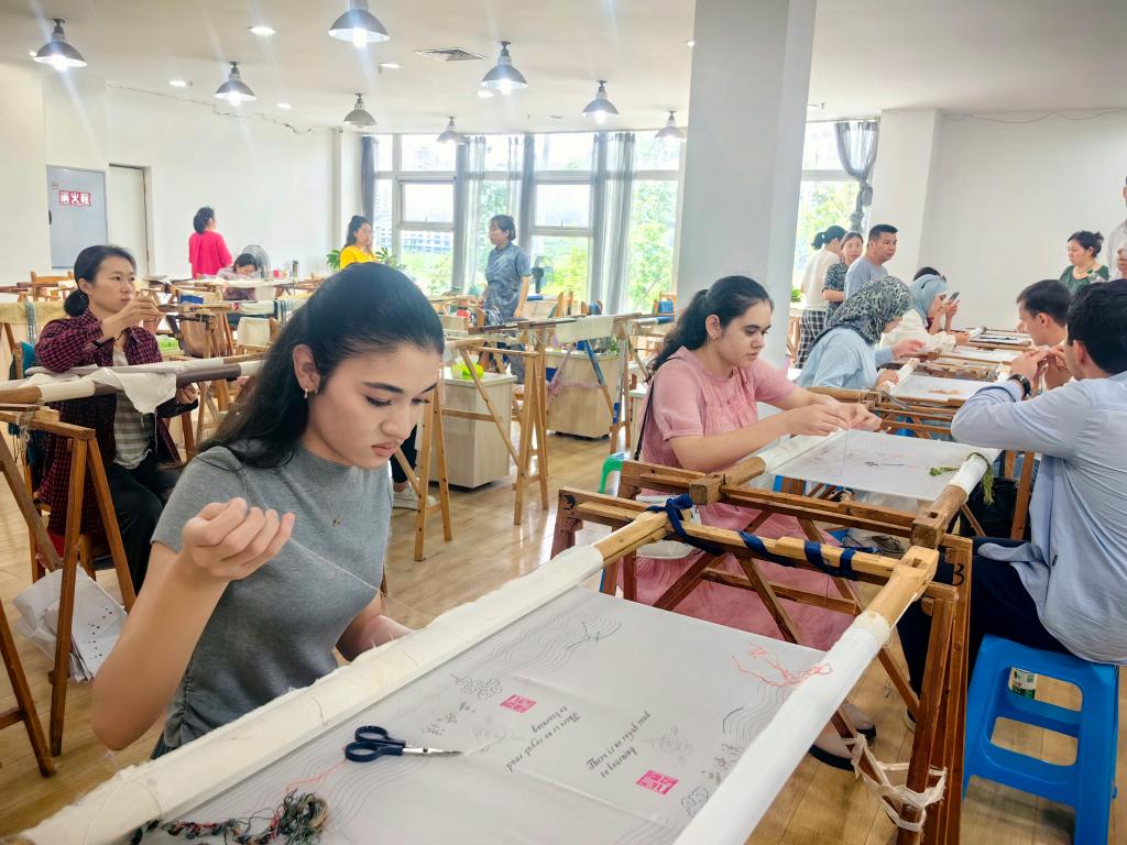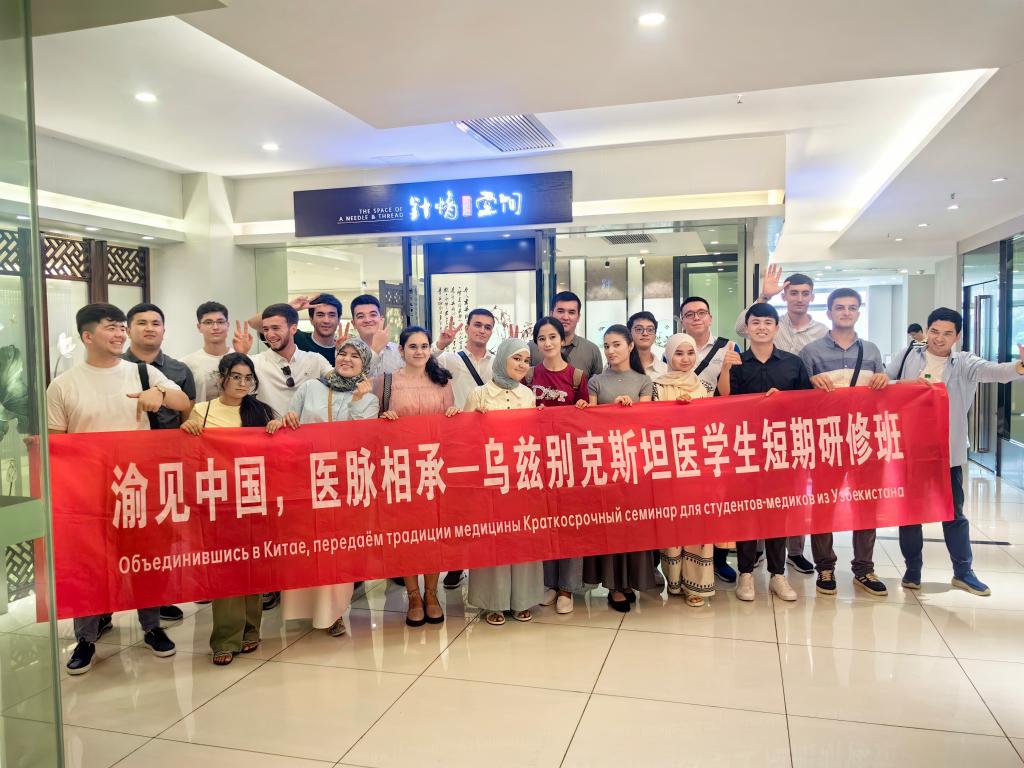 7月11日,乌兹别克斯坦医学研修班展开了一场融合传统医学智慧与民间工艺之美的文化探索之旅。学员们上午走进我校附属中医院参访中医临床,下午则亲手体验了被誉为“万州明珠”的市级非物质文化遗产——三峡绣技法。这场跨越古今的实践课程,生动诠释了“以文化人,以文育人”的教育理念,为未来医者注入深厚的人文底蕴。