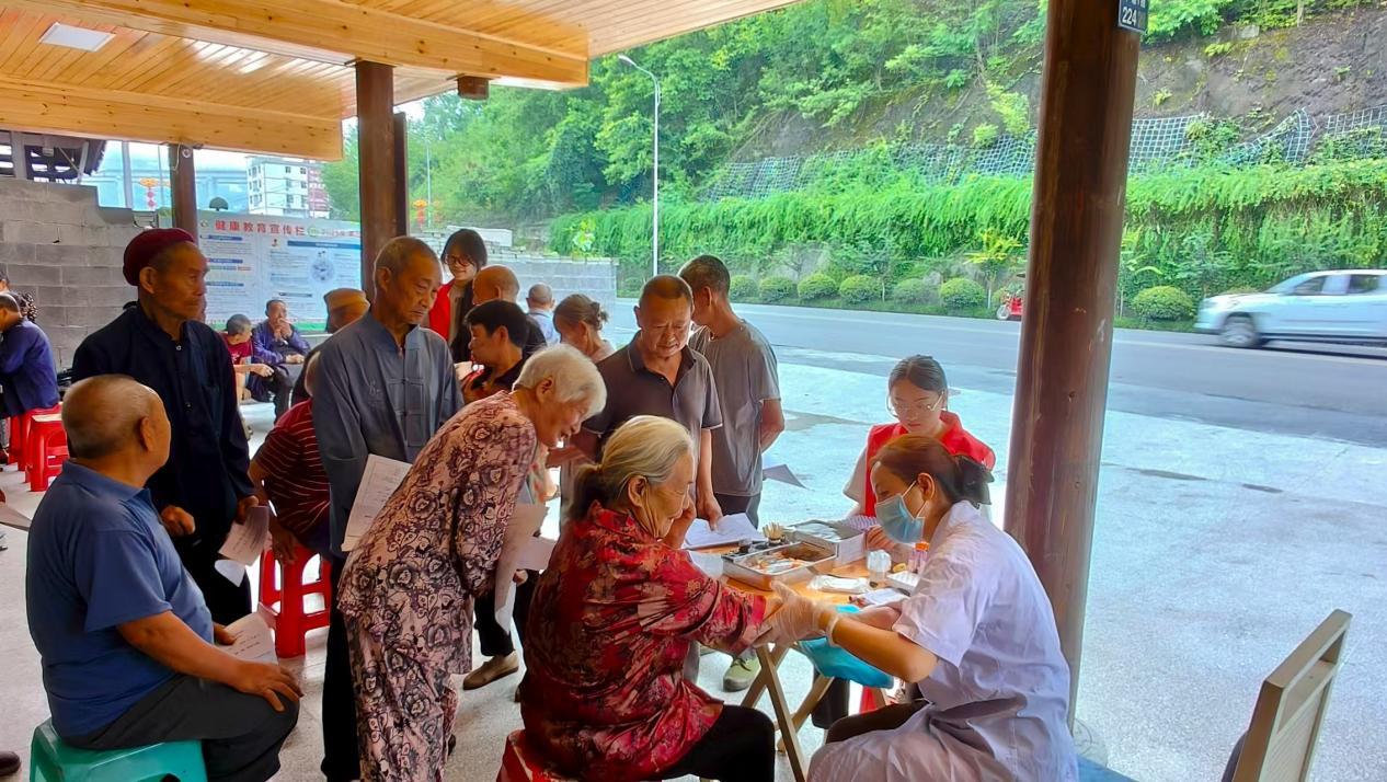 推普服务队走进彭水县汉葭街道、柏杨居民委员会,协助汉葭医院完成 2025 年村级老年人体检,开展“推普+急救知识宣传”主题活动。在公卫医师刘洪志手把手指导下,志愿者用通俗易懂的话语向村民解释体检流程和相关项目,将“乡音”和普通话融合,讲解肺结核防治、预防高血压及糖尿病等常见慢性病管理知识,并发放健康宣传手册。并走访了 10 户家庭,针对性地给予基础健康建议和家庭日常用药的注意事项。积极推广普通话,从紧急场景、医患沟通和数字生活适应等方面让村民认识到普通话在日常生活中的重要性。同时,在彭水县汉葭街道和红军渡广场周边,以《行走苗乡:彭水普通话应用调研》为题,推普服务队开展线上和线下实地调研。