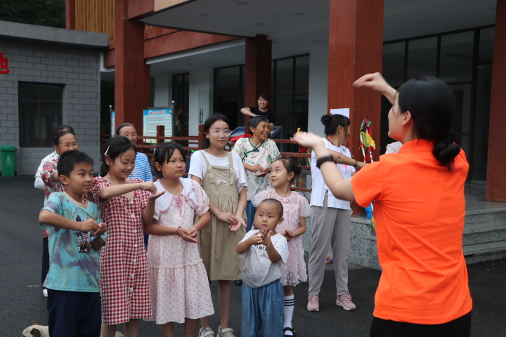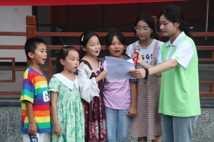 7月10日晚,志愿者们策划一场与石坪村邂逅的文艺汇演。成员们精选《普通话颂——山河同声》《乡愁》《小城夏天》等诗朗诵和歌曲,通过分句领读、节奏拍手、角色扮演等方式拆解朗诵技巧。同时,邀请村民参与“击鼓传花”“绕口令”“成语接龙”等趣味活动,用轻松活泼的方式引导村民感受普通话的独特魅力。