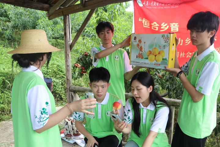 当地特色农产品—石桶寨锦绣黄桃即将迎来大丰收,其因高海拔和强光照而口感醇厚、营养丰富。但在与村干部和果农的调研中,团队了解到黄桃价格长期低位徘徊,且销售渠道单一,导致优质黄桃难以实现价值最大化。在消费升级和电商普及的背景下,团队成员化身主播,深入黄桃基地,用标准普通话以第一视角在推介锦绣黄桃的同时推广当地文旅资源。这既是助农之举,也让普通话成为连接外界与恒合的纽带,以实际行动助力乡村振兴。
